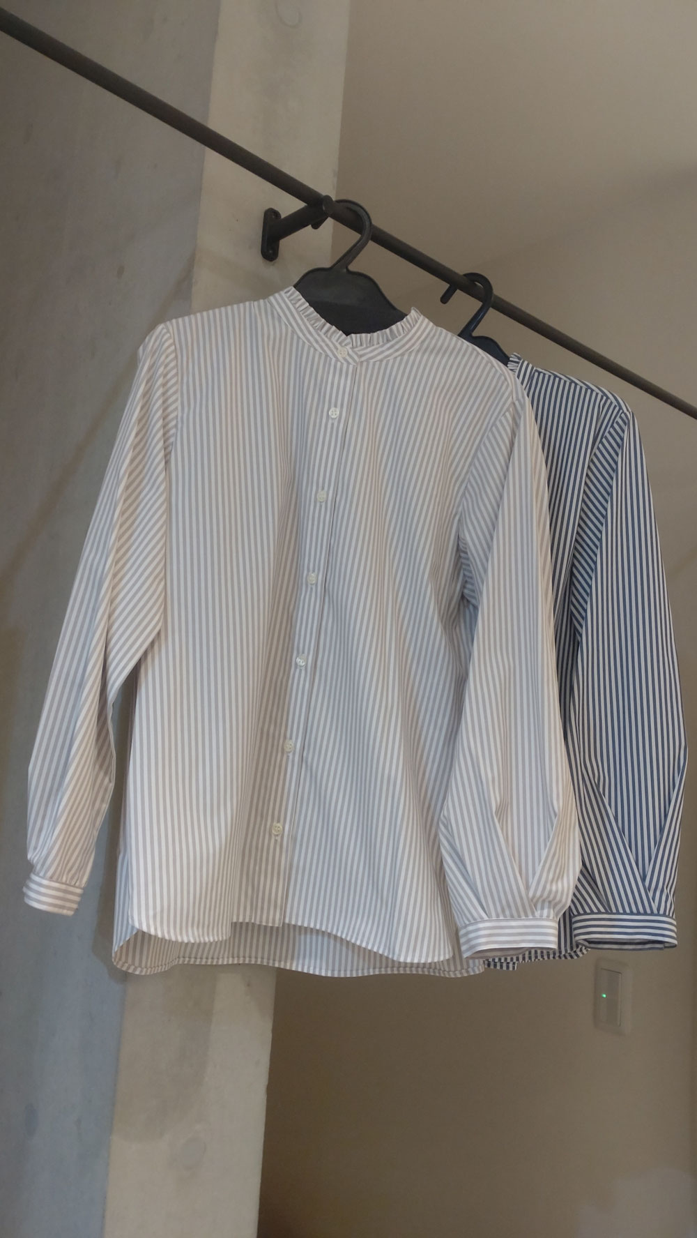 ストライプのバンドカラーシャツブラウス
